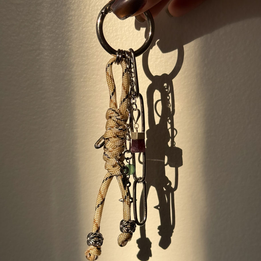 Bring bold, rugged luxury to your everyday carry with this one-of-a-kind Raw Ruby Crystal Junk Charm. Featuring an unpolished ruby straight from India and Brazilian green aventurine, this charm blends natural grit with modern edge. Its stainless steel hardware adds durability and shine, while the hand-tied paracord braid creates a tactile, street-inspired aesthetic unique to NCG. Attach it to your keys, bag, or belt loop for a functional yet statement-making accessory infused with grounding ruby energy.
