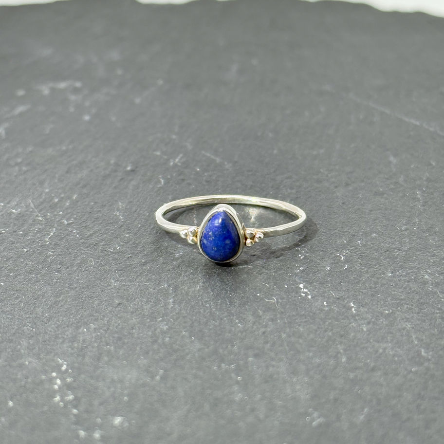 This ring features a teardrop bezel deep sodalite from Brazil. Only one available! Handmade with sterling silver 925 band. Great for stacking and every day adornment. Only Size 9 available